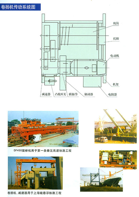 大噸位非標(biāo)卷揚(yáng)機(jī):主要用于卷揚(yáng)、拉卸、推、拖重物。如各種大中型砼、鋼結(jié)構(gòu)及機(jī)械設(shè)備的安裝和拆卸。其結(jié)構(gòu)特點(diǎn)是鋼絲繩排列有序、有吊安裝可靠、適用于碼頭、橋梁、港口等路橋工程及大型廠礦安裝設(shè)備。 |